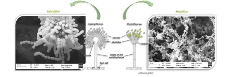 Fig.2:  caratterizzazione al SEM di due diversi generi di muffe