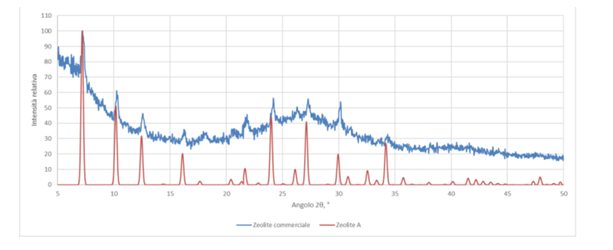 Figura 2: Analisi XRD di zeolite commerciale e zeolite A