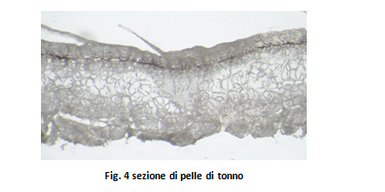 In fig. 4 si può osservare l’immagine di una sezione trasversale di una pelle di tonno ottenuta con un microscopio ottico in trasmissione.