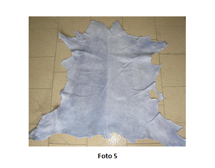 La foto 5 mostra una pelle in wet blue sulla quale è evidente una disomogenea distribuzione del cromo per accumulo superficiale.