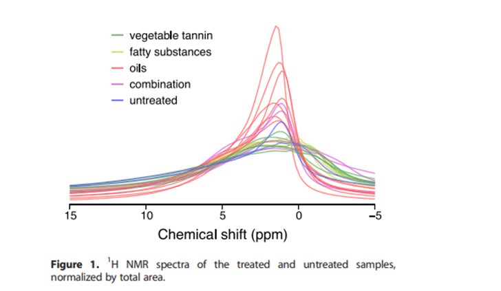 Le sostanze prese maggiormente in considerazione sono i tannini vegetali che sono un gruppo di polifenoli distinti in due classi: tannini condensati e idrolizzabili. I tannini. I tannini condensati sono basati su un anello flavonoide, mentre i tannini idrolizzabili sono derivati dello zucchero, a base di glucosio, mentre per gli ingrassi sono stati analizzati trigliceridi naturali non modificati. Nella sperimentazione sono stati presi in considerazione gli aspetti dell’invecchiamento ma lo spunto e la ricerca ha evidenziato anche l’influenza interessante delle diverse sostanze utilizzate sui segnali dell’NMR.