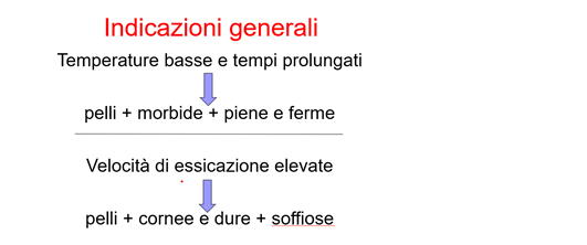 In linea generale potremmo sintetizzare la condizioni di essicazione o asciugaggio dei pellami come sotto:
