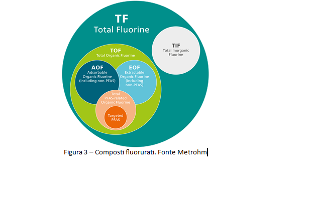 Tutto quanto detto ha provocato lo spostamento del baricentro dalla determinazione dei singoli composti PFAS a misura del fluoro totale con la ovvia necessità di definire univocamente cosa si intende per fluoro totale, potendo ottenere risultati variabili, come si nota dalle figure 3 e 4, a seconda dei diversi protocolli analitici utilizzati.