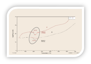 A completare il quadro delle applicazioni di particolare interesse strategico per il settore, vi è la possibilità di impiegare sistemi di analisi termica per indagini che riguardano la caratterizzazione di idrolizzati proteici, con particolare riferimento alla possibilità di qualificare i prodotti che derivano da approcci di trasformazione e valorizzazione degli scarti conciari, ad esempio, mediante trattamenti idrolitici di tipo chimico e/o enzimatico, tematica attualmente oggetto di studi da parte della SSIP, nell’ambito di progetti dedicati alla Circular Economy. Come suggerito da alcuni studi avviati in tal senso, la tecnica è in grado non solo di consentire il monitoraggio dell’efficacia dei processi di idrolisi, ma anche di verificare l’efficacia di impego dei prodotti ottenuti in numerosi ambiti di applicazione, comprendenti applicazioni di refilling delle pelli degradate, attraverso l’impiego di idrolizzati di collagene (SEM, FTIR and DSC Investigation of Collagen Hydrolysate Treated Degraded Leather. Yang Zhang Zifan Chen, Xuegang Liu, Jiabo Shi, Hongjun Chen, Yuxuan Gong. Journal of Cultural Heritage. 2020), anche in questo caso, applicazione oggetto di studio nell’ambito di attività di dottorato di ricerca a caratterizzazione industriale, che la SSIP segue in collaborazione con l’Università degli Studi di Napoli “Federico II”.