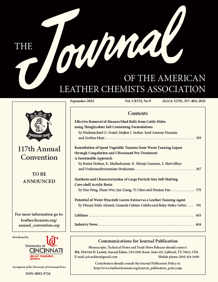 Rivista tecnica: Journal of American Leather Chemists Association – JALCA
